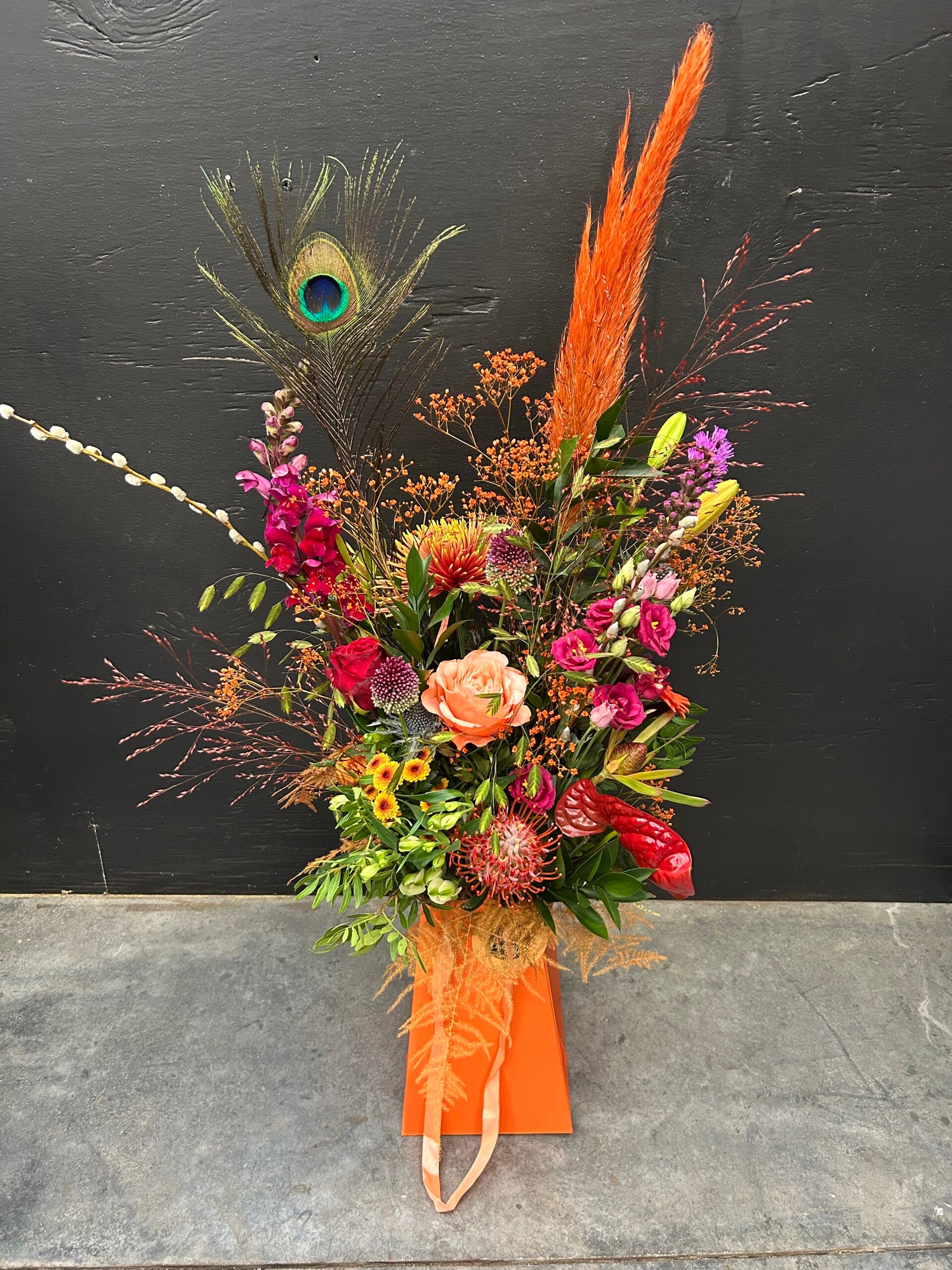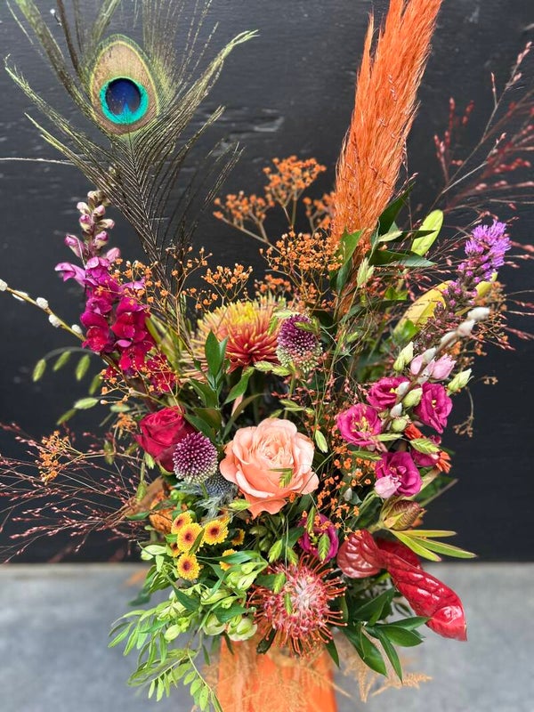 Houd er rekening mee dat verse producten kunnen afwijken van de foto's omdat ze handgemaakt zijn en onze bloemen afhankelijk zijn van seizoensgebonden beschikbaarheid voor verse kwaliteit.